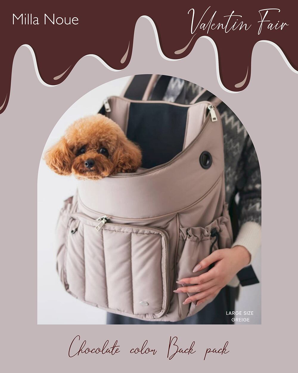 CONCEPT 大切な存在に、 安心できる隠れ家を。 外出先でも安心して過ごせる 小さな居場所をつくりたい。 そんな想いから MillaNoue Cachette は生まれました。 包み込むようなフォルムと、 静かに寄り添う設計。 パートナーがどこにいても 安心して過ごせる空間を届けます。 商品説明 MillaNoue Cachette(ミラヌーカシェット) は、パートナーが安心して過ごせる “隠れ家”のような空間をイメージしてデザインされたキャリーバッグです。 MillaNoueのFuFuシリーズの特徴である やわらかなパフフォルムはそのままに、 美しさと使いやすさ、機能性のバランスを大切に設計しました。 スクエアシルエットにすることで 開口部が大きく開き、内部の空間もしっかり確保。 包み込むようなフォルムでありながら バッグの中はゆとりのある設計で、 パートナーが快適に過ごせる空間になっています。 サイド部分はあごを乗せやすい高さに設計。 しっかりと中綿を入れることで あごを預けても沈みにくく、 安定感のあるくつろぎを生み出します。 また、左右どちらの肩に掛けても使いやすい 前後対称デザインを採用。 持ち手は長さ調整が可能で、 手持ち・肩掛け・斜め掛けの 3通りのスタイルでお使いいただけます。 MillaNoueらしいやわらかなフォルムに 同系色のハンドルを合わせることで 日常のスタイリングにも自然に馴染む 落ち着いたデザインに仕上げました。 また、カスタムネームパッチを付ければ世界で一つだけのバッグに。 お散歩やお出かけはもちろん、 日常の延長として持てるキャリーバッグです。 [おうちでも使える、安心の居場所] Cashetteカシェットは外出時だけでなく おうちでのベッドとしてもお使いいただけます。 クッション性のあるやわらかなフォルムが パートナーを優しく包み込み、 安心してくつろげる空間に。 普段からベッドとして使っていただくことで 外出時も「いつもの居場所」として 落ち着いて過ごすことができます。 普段使っているベッドを そのまま持ち運ぶような安心感。 おうちでも、 お出かけ先でも。 パートナーにとっての 小さな隠れ家としてお使いください。 FEATURES Bag ① 包み込むパフフォルム MillaNoueのFuFuシリーズの特徴である やわらかなパフフォルム。 包み込むような形状で パートナーが安心して過ごせます。 ② ゆったりとしたスクエア設計 スクエアシルエットにより 開口部が大きく開き、内部も広々。 見た目以上のゆとりがあります。 ③ あごを乗せやすいサイド設計 サイド部分はあごを乗せやすい高さ。 しっかりと中綿を入れているため 沈みにくく、安定した姿勢でくつろげます。 ④ 3通りに使える持ち手 持ち手の長さは金具で調整可能。 ・手持ちトート ・肩掛け ・斜め掛け シーンに合わせてお使いいただけます。 ⑤ 前後対称デザイン 左右どちらの肩でも使いやすい 前後対称デザイン。 持ち方を選ばず快適に使用できます。 ⑥ 日常に馴染むデザイン 同系色のハンドルと 落ち着いたカラーリングで 日常のスタイリングにも自然に馴染みます。 ⑦カスタムネームパッチ 取り外し可能なブランドロゴパッチ部分には、パートナーのお名前を刻印できる 「カスタムネームパッチ(別売り)」を装着することができます。 世界にひとつだけのバッグとして、より特別な存在に。 ※ネームパッチは別売りとなります。 Inner Bag ⑧ 取り外し可能なインナーバッグ Cachetteの特徴でもあるインナーバッグ。 6つのポケットと2本の飛び出し防止リード付きで飛び出しを防止。 小物も整理して収納できます。 ⑨ メッシュ切り替え構造 上部は全面メッシュではなく メッシュ部分と生地部分を切り替えた設計。 外の様子を眺めたいとき、 静かに過ごしたいときなど パートナーの気分に合わせて使い分けができます。 ⑩ スムーズなダブルファスナー 上部はダブルファスナー仕様。 開閉がスムーズで、出入りも快適です。 ⑪消臭ネームタグ付き 消臭機能糸を使用したネームタグを採用。 バッグ内の気になるニオイを軽減します。 ⑫お手入れ可能なインナーバッグ インナーバッグは取り外して 手洗いでのお手入れが可能。 いつでも清潔にお使いいただけます。 RECOMMEND こんな方におすすめです ・パートナーと安心してお出かけできるキャリーバッグをお探しの方 ・日常の装いにも自然に馴染む、上品なキャリーバッグを持ちたい方 ・パートナーが落ち着いて過ごせる空間を大切にしたい方 ・デザインだけでなく機能性にもこだわりたい方 ・長く大切に使えるキャリーバッグをお求めの方 LAST MESSAGE パートナーと過ごす時間を、 もっと心地よく。 MillaNoueは、 日常の中にある大切な時間に 静かに寄り添います。 COLOR グレージュ SIZE 本体:W40.0×H32.0×D19.0 持ち手全長:約60~112cm(調整可能) ショルダー幅:3.5cm 外ポケット:3 内ポケット:0 インナーバッグ:W38.0×H47.0×D18.0 外ポケット:6 内ポケット:0 WEIGHT 本体 約900g インナーバッグ 250g クッション 150g 耐荷重 8.5キロ MATERIAL 本体:ポリエステル インナーバッグ:ポ