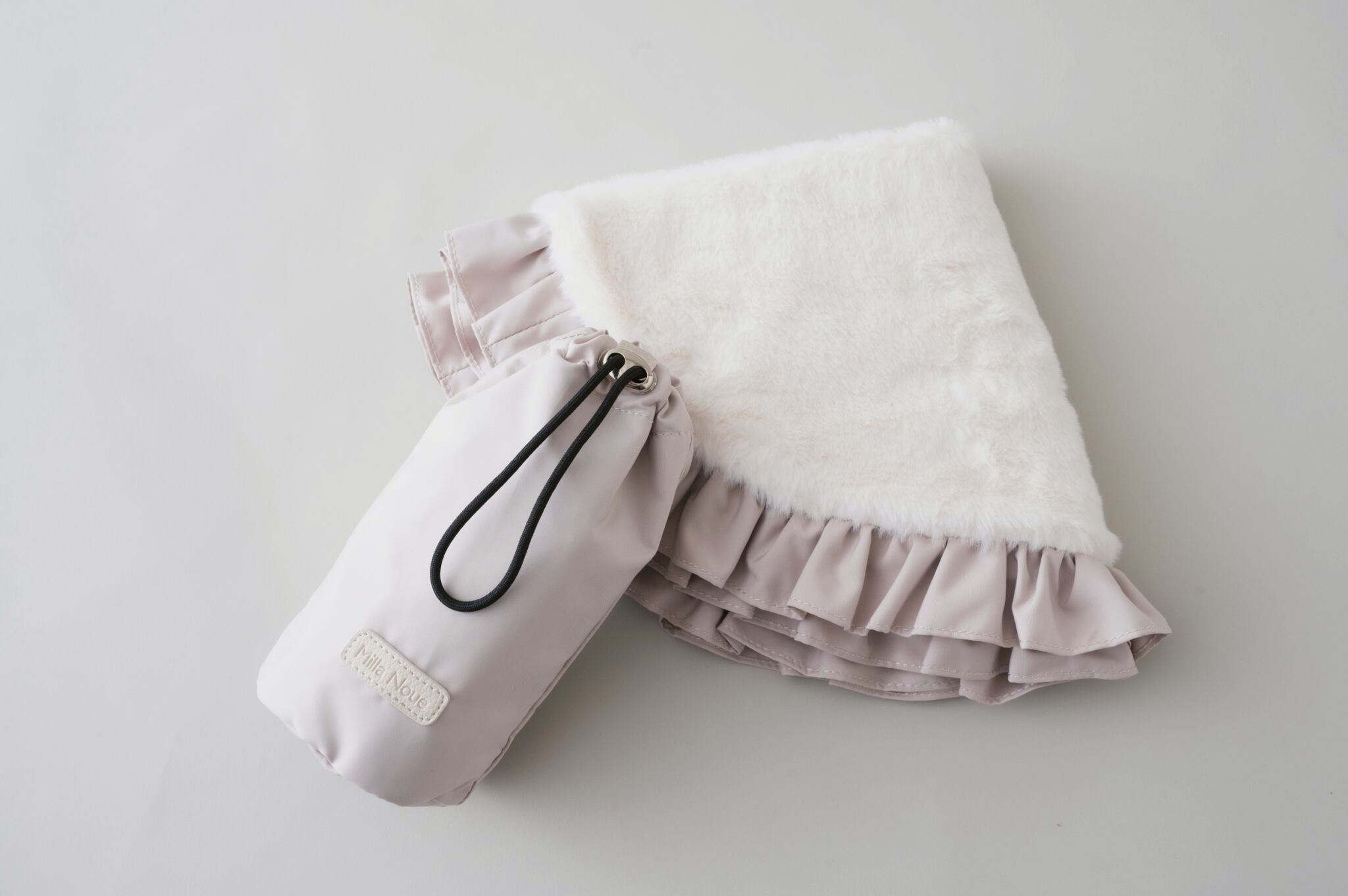 フリルと同素材の巾着付きなので、出し入れも、持ち運びもらくちん♪