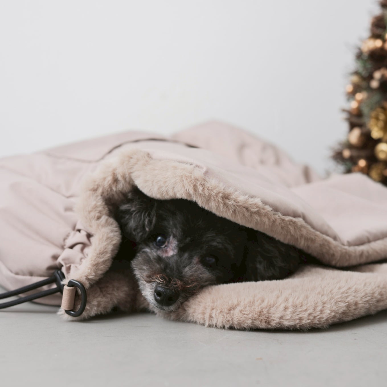 柔らかく毛足の長い肌触りの良いフェイクファーをふんだんに使い、まるで毛布に包まれているかのような暖かさ。