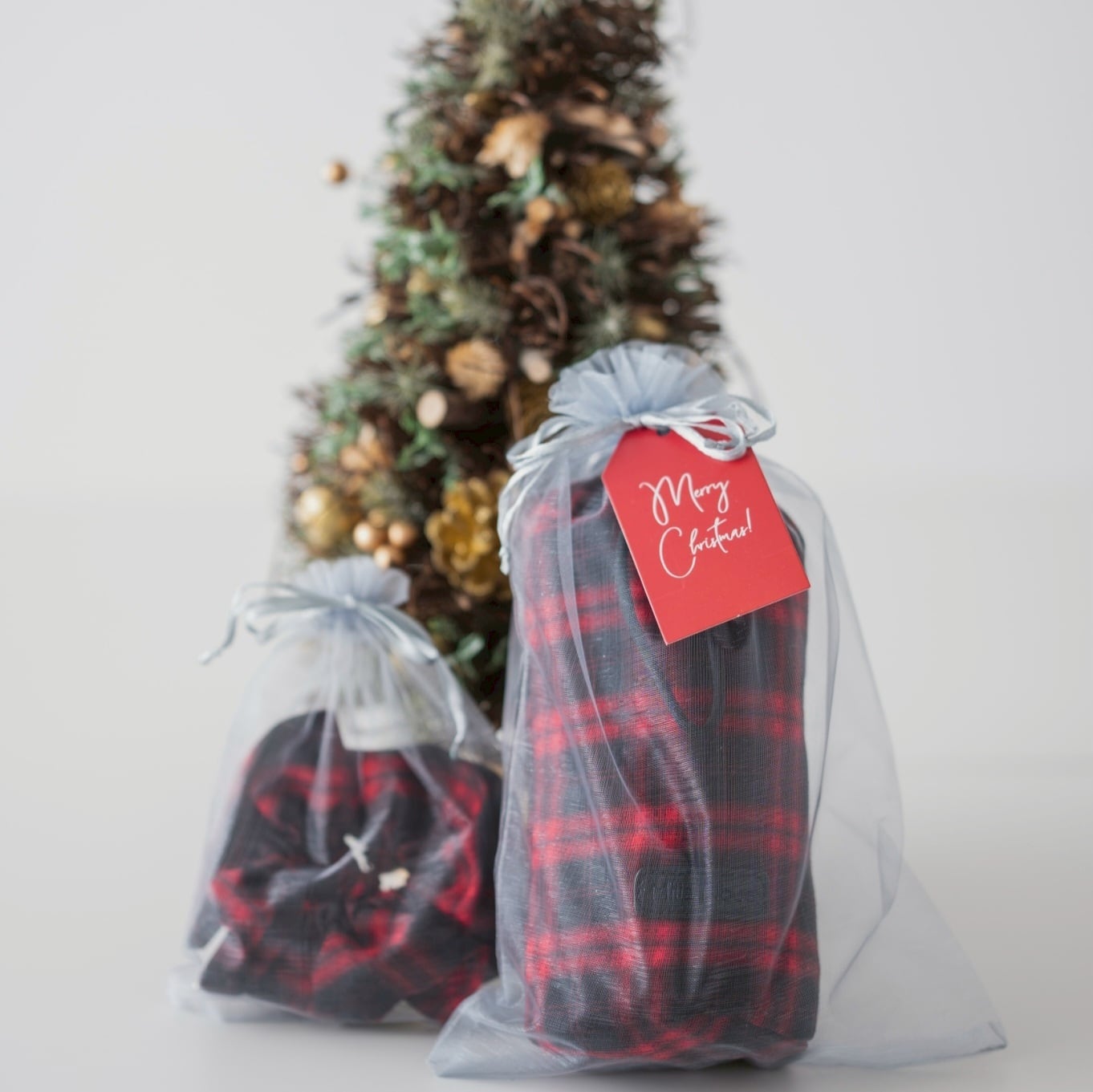 フリル部分にはホリデーシーズンにぴったりな華やかなチェック生地をふんだんに使用。