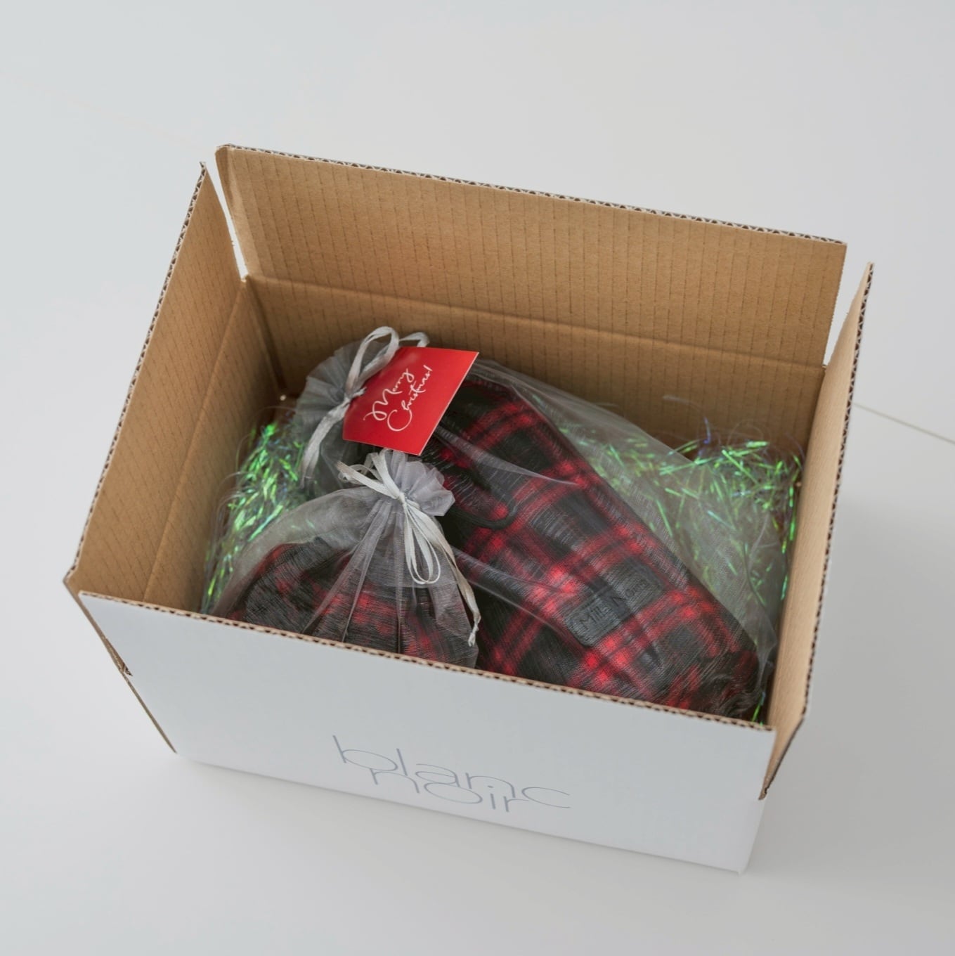 フリル部分にはホリデーシーズンにぴったりな華やかなチェック生地をふんだんに使用。
