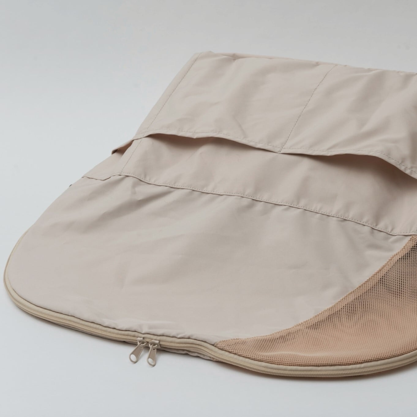 メッシュ部分と生地部分を切り替えた設計。