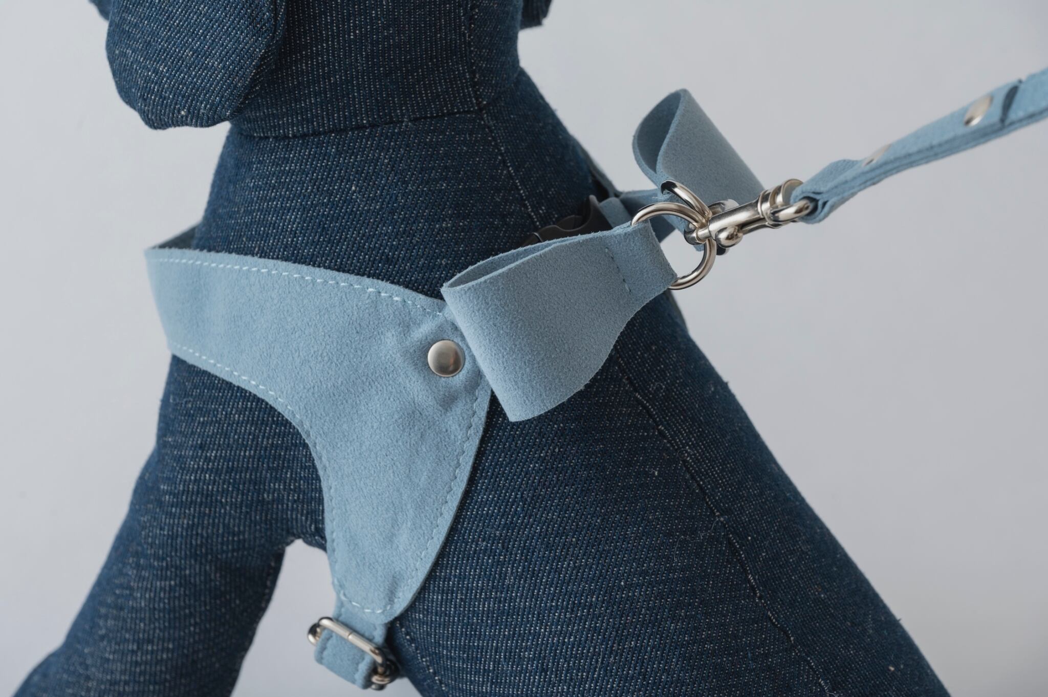 背中の2つのDカンにリードをつなぐとリボンスタイルになるデザインは