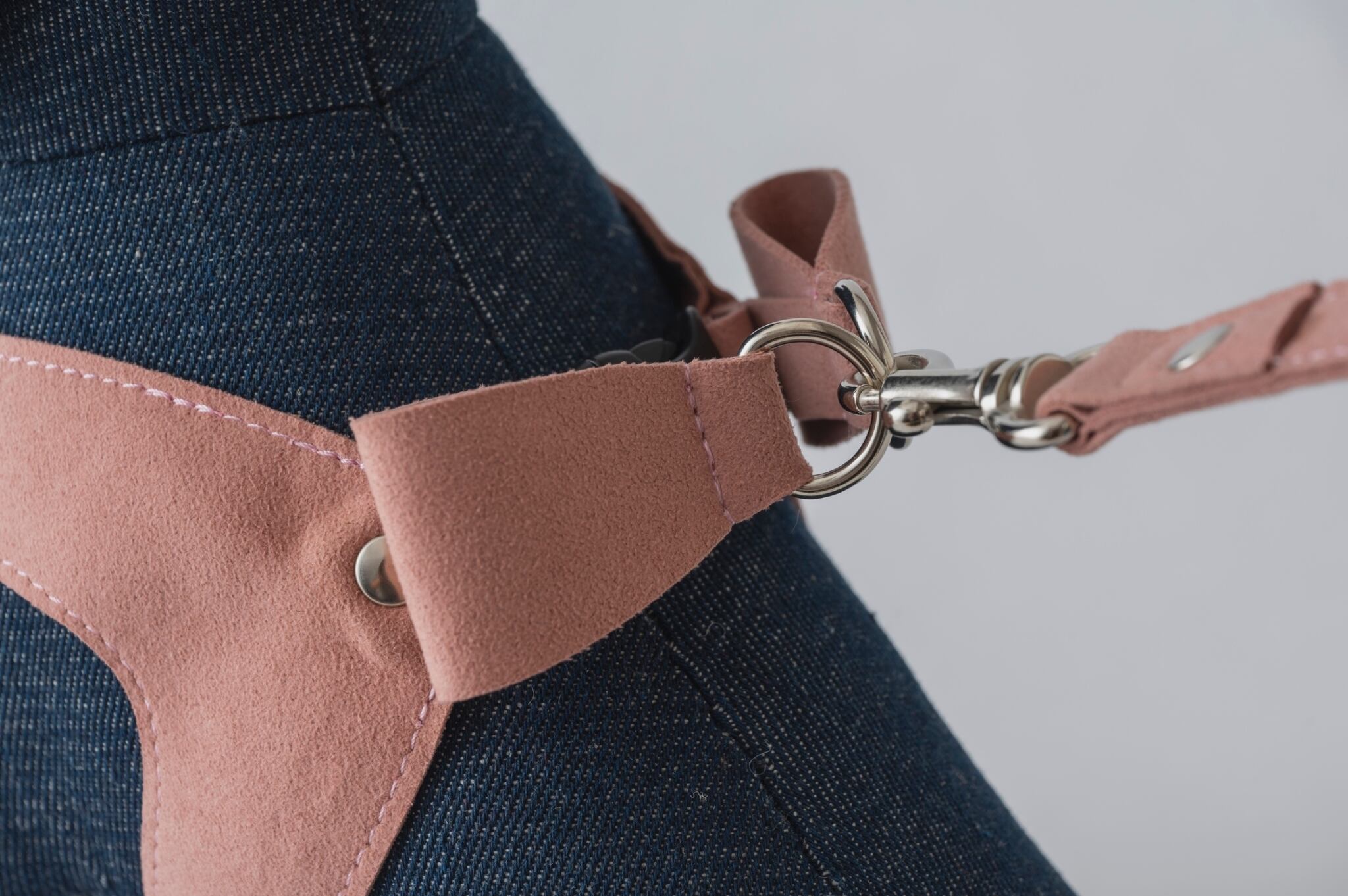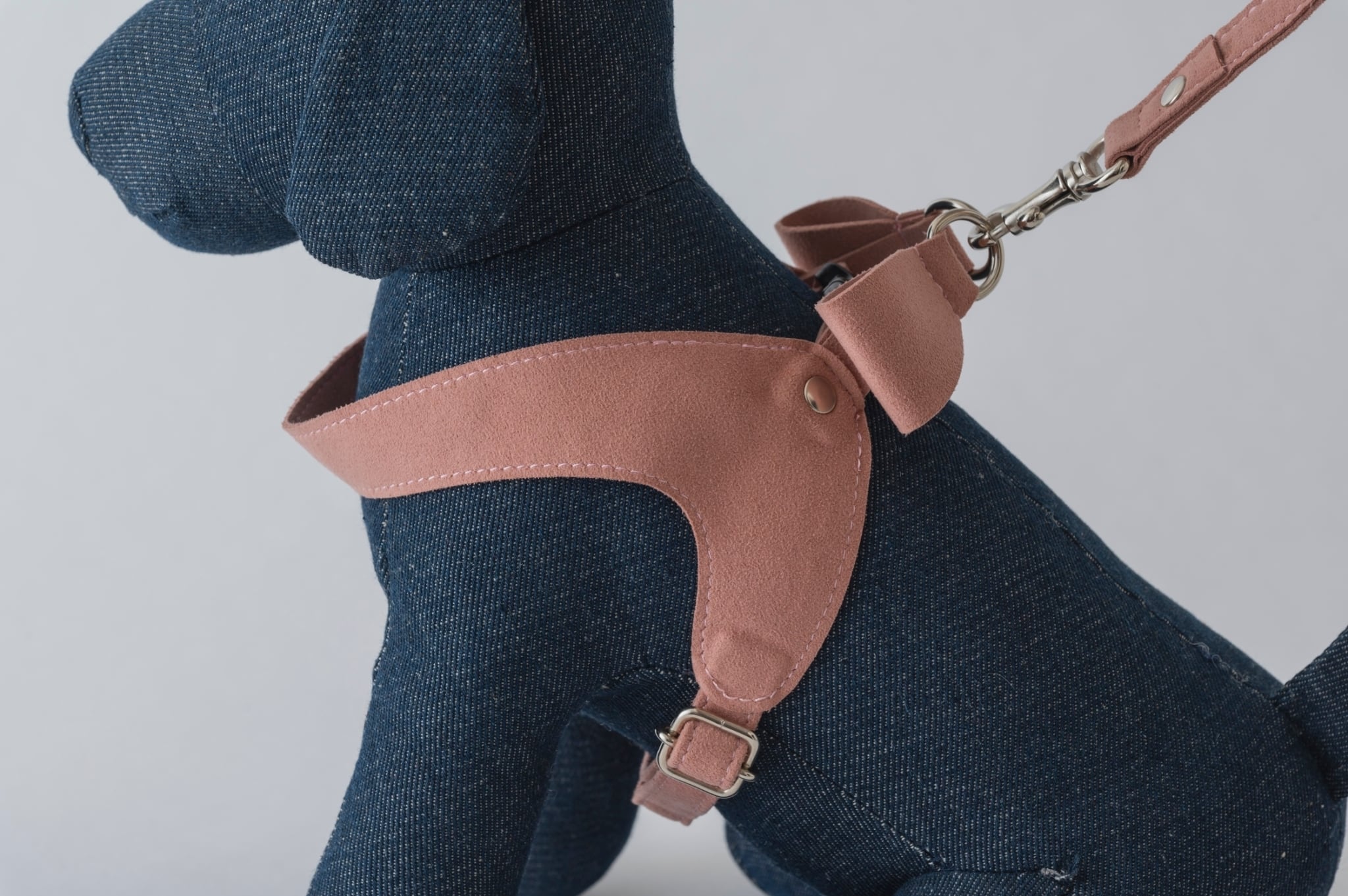 背中の2つのDカンにリードをつなぐとリボンスタイルになるデザインは