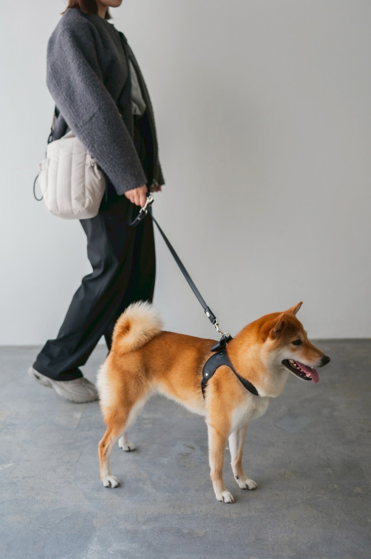 背中のDカンにリードをつなぐとリボンスタイルになるハーネスは